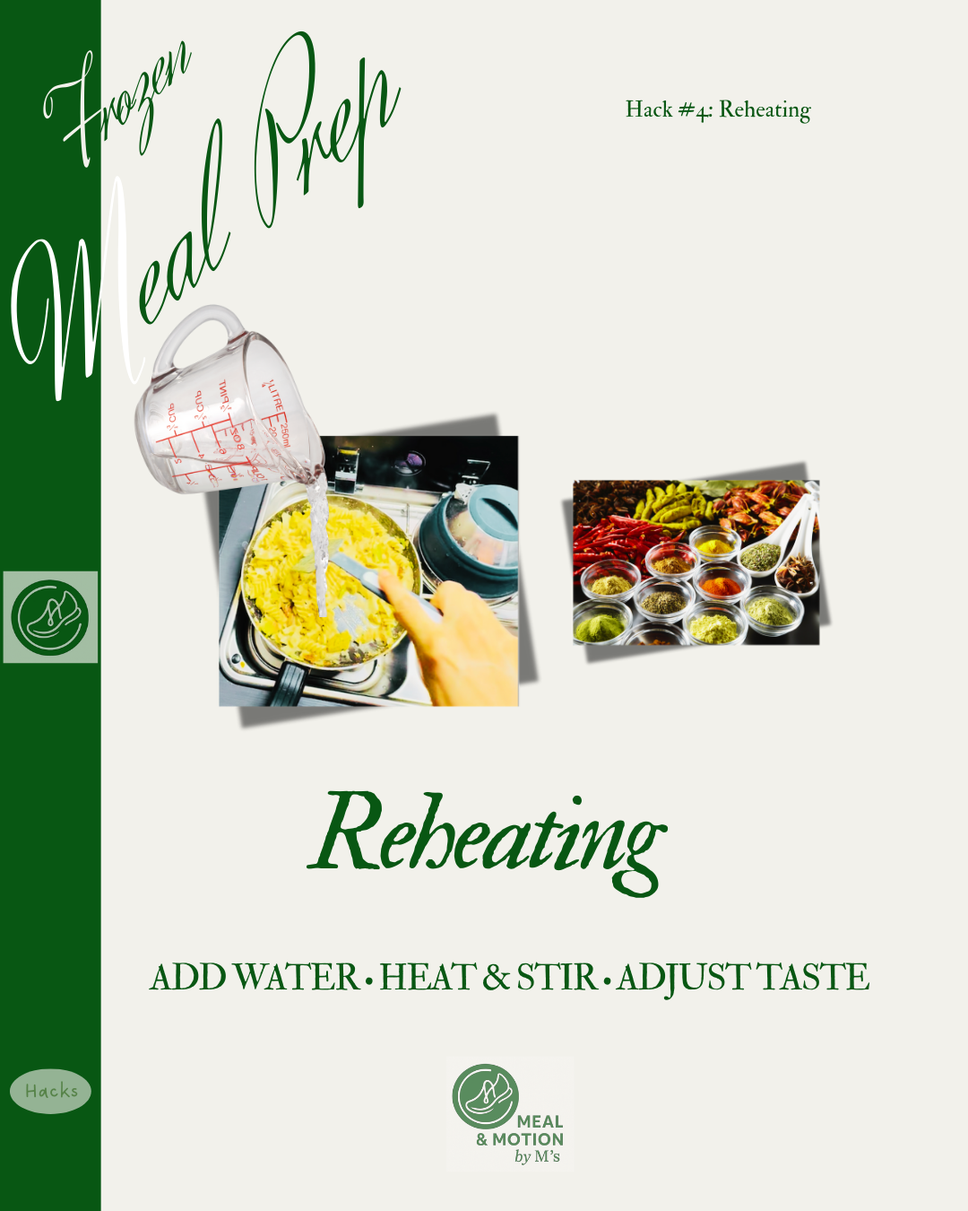 Add water • heat & stir • adjust taste: the simple method to bring frozen meal-prep portions back to life quickly and evenly.